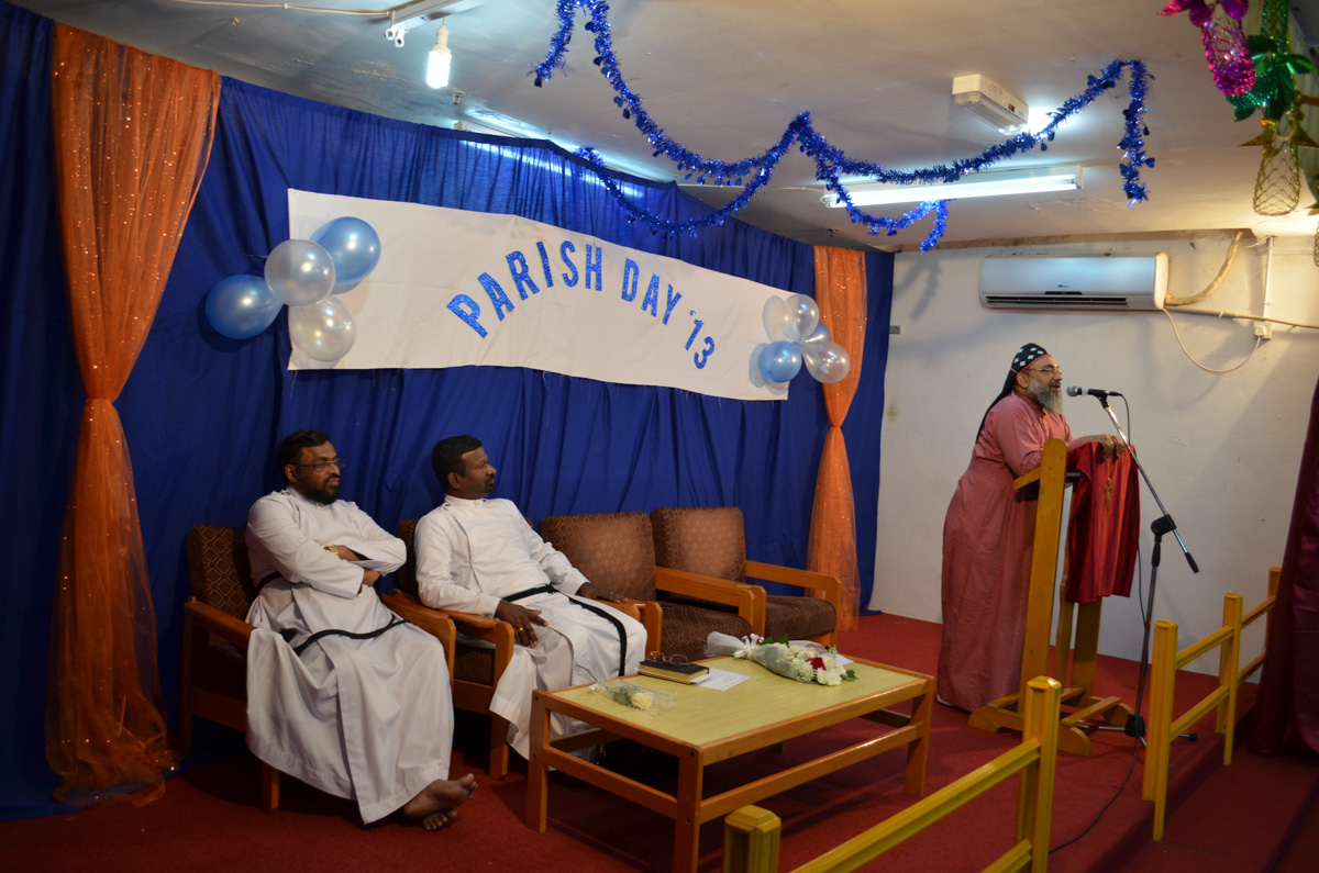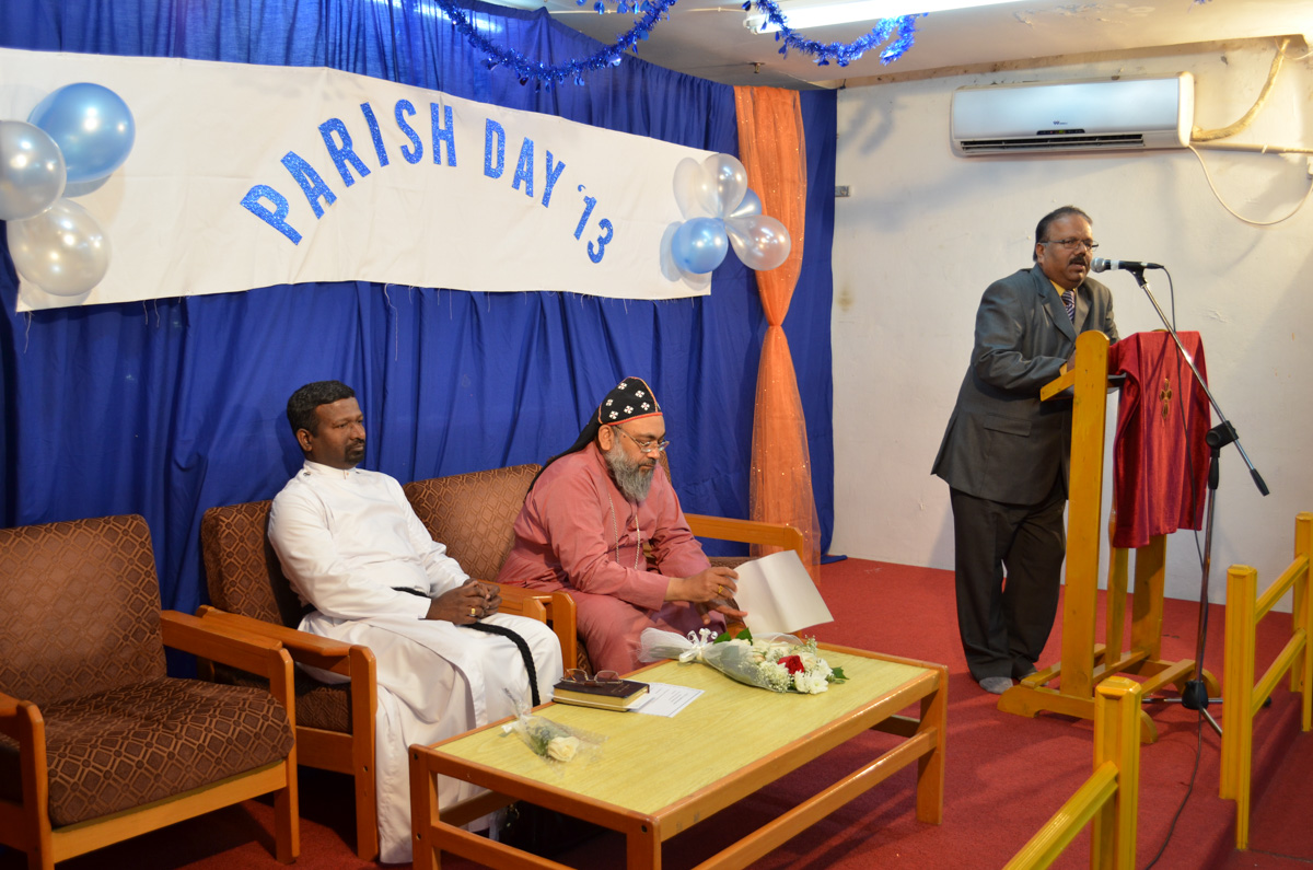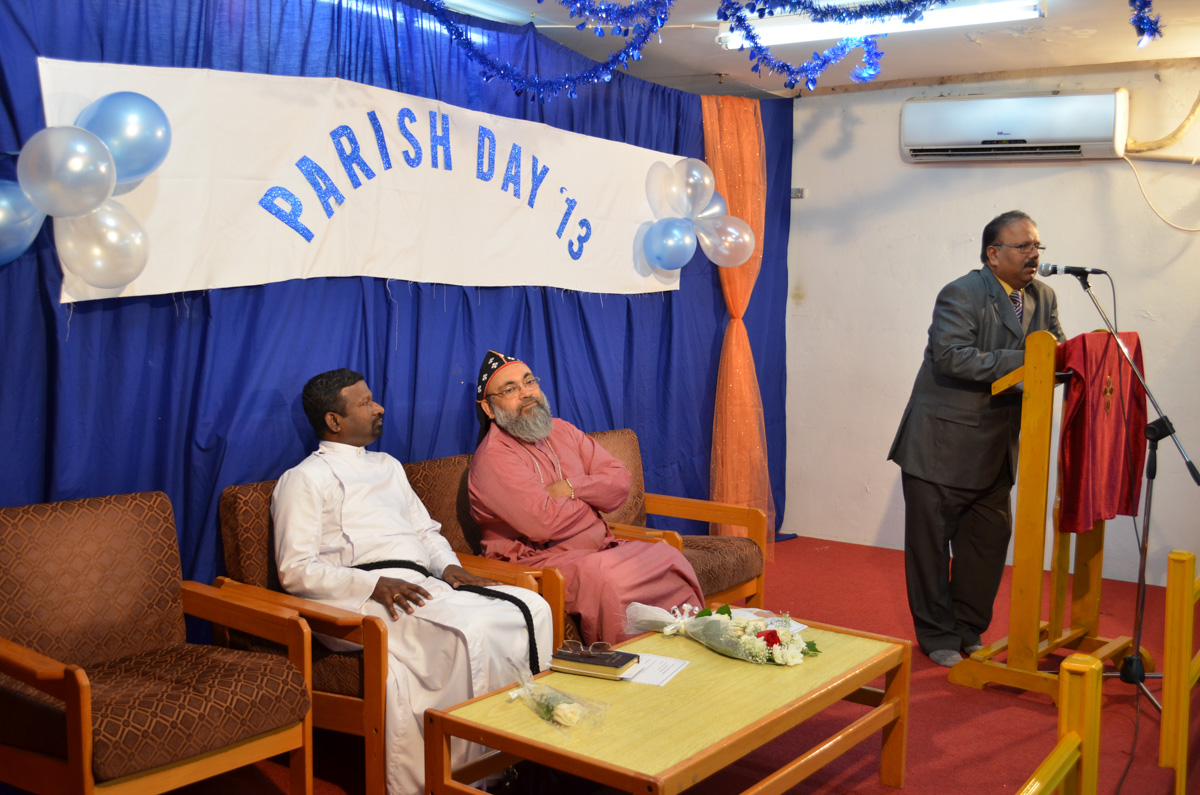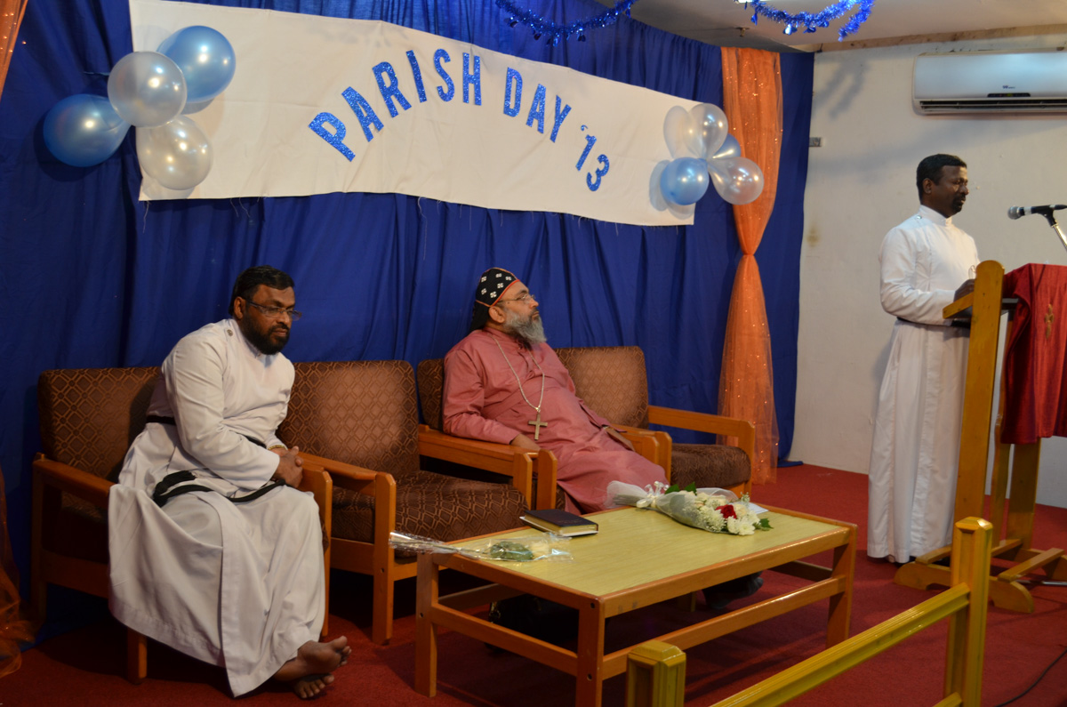The annual parish day was celebrated on Thursday, 7 November 2013 at the Marthoma Prayer Hall Mangaf. The vice president of the church Mr. Mohan George welcomed the gathering, Rt. Rev. Dr. Euyakim Mar Coorilos Episcopa, The Sahayi Methran of the Marthoma Niranam Maramon Diocese inaugurated the function. Rev. Johny Andrews presided over the meeting. Member of the church performed various programs, including Solos, Group songs, Fancy dress by kids, Naadan paattu and margam kali. Mr Jerry George, convener of the event presented vote of thanks and dinner was served to all who gathered.