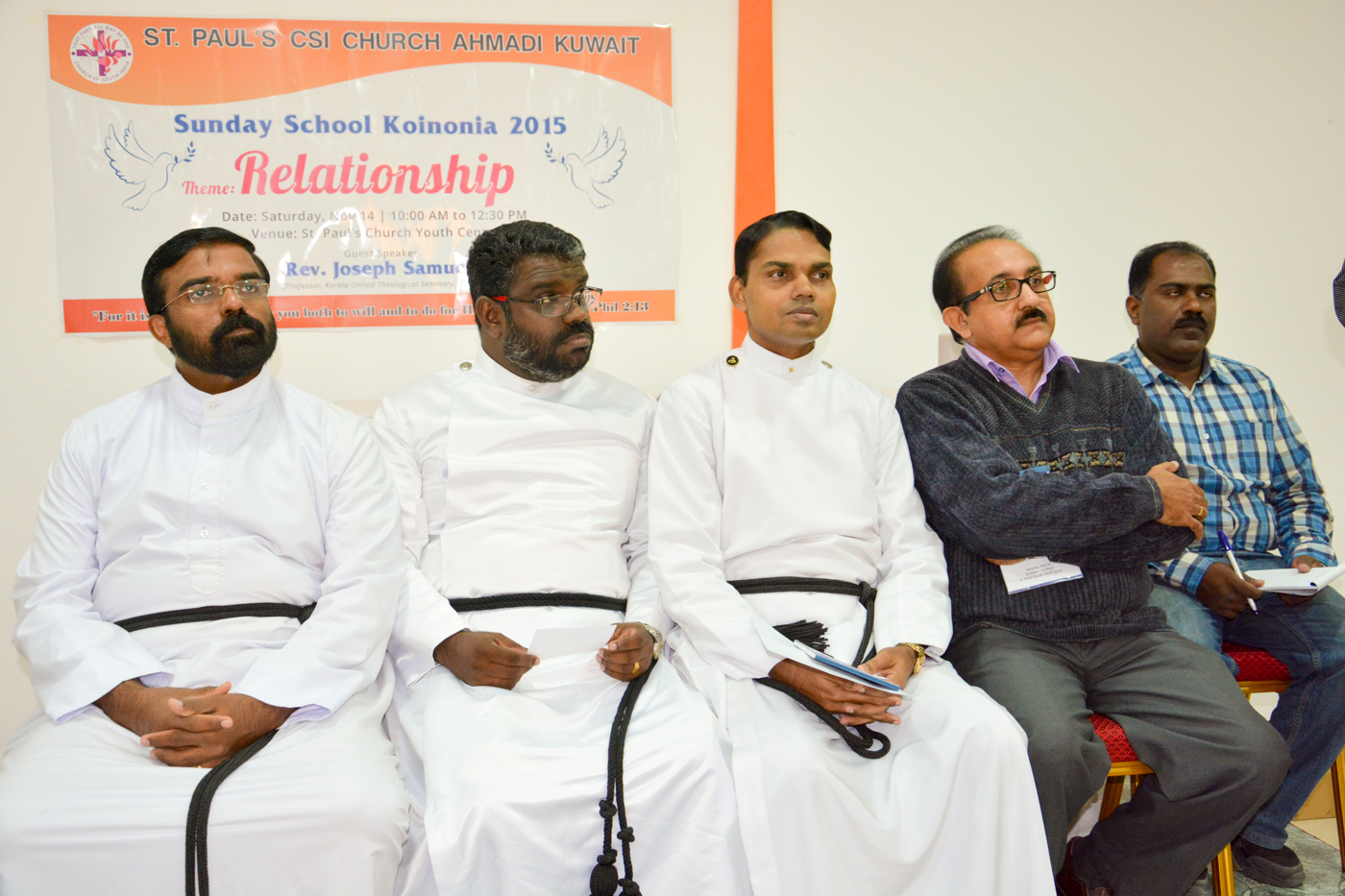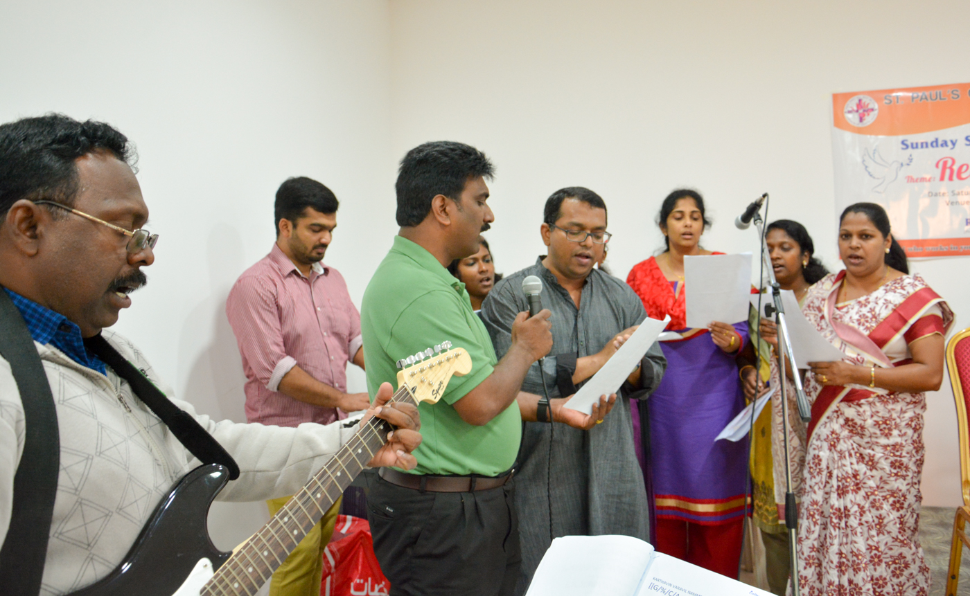As part of the Sunday school activities, a one day Koinonia was organized by the St. Paul’s CSI Sunday School, Ahmadi, on 13 the November 2015. Teachers and students of St. Peter’s CSI Church Sunday School, Kuwait City, were invited to get blessed alongside us. The Koinonia was opened with prayers by our vicar, Rev. C. C. Sabu. Our headmaster, Mr. Sydney Dolton, extended a short note of welcome. A short, but devoted session of praise and worship by Mr. Jagan, Mr. Jolly, Mr. Dennis, Mrs. Sani, Mrs. Cijimol, Mrs. Ani, Mrs. Vidhu with Mr. Eben on the keyboard followed. Mr. Suresh Thomas, headmaster of the St. Peter’s Sunday school, felicitated the Koinonia. Blessings came abound at presentation of the theme ‘RELATIONSHIPS’ and speech of Rev. Joseph Samuel, honored Professor at the Kerala United Theological Seminary, Thiruvananthapuram. He stressed on the need of strong relationships in a world falling apart. The unfailing love of our Lord who gave us His Son, and the need to keep the love going in our relationships were emphasized. It touched one and all. The presence and participation of parents made it worthwhile. This was followed by a group discussion wherein questions were posed and the groups reflected and voiced their views on the thoughts brought up by Rev. Samji K. Sam.